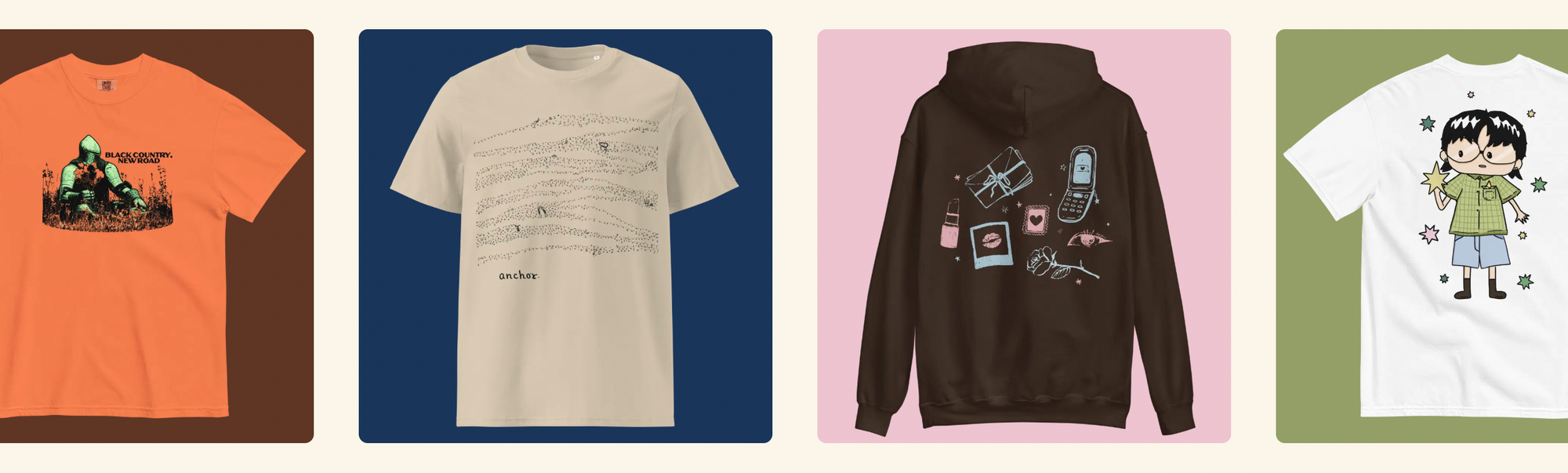 E: "Haha, well for good reason! I think people like having that classic band shirt, it connects folks. But for sure there's always a space for individuality. Black Country New Road released with us this bright orange t-shirt with a funky design, and it's doing so well right now; fans love it. So there's a real opportunity to create more art-forward merchandise that's not just a logo."