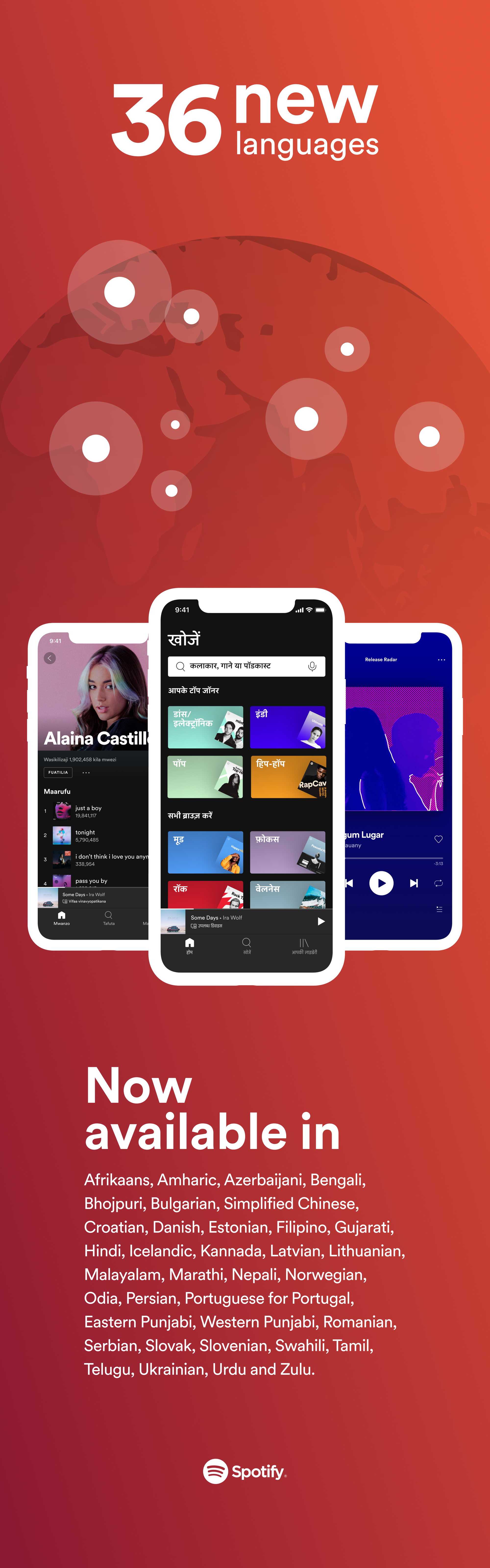 The new languages are available on the Spotify web platform, and today will begin to roll out on the mobile app.
