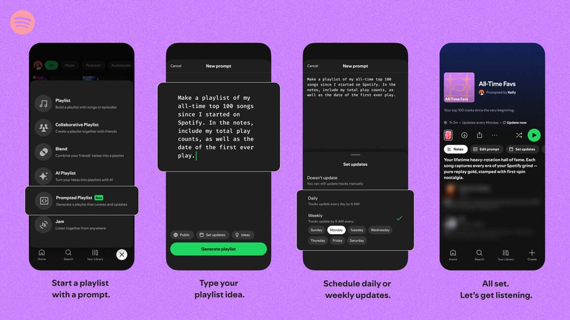 - Spotify will generate a playlist from your idea. From there, you can also set it to refresh daily or weekly.