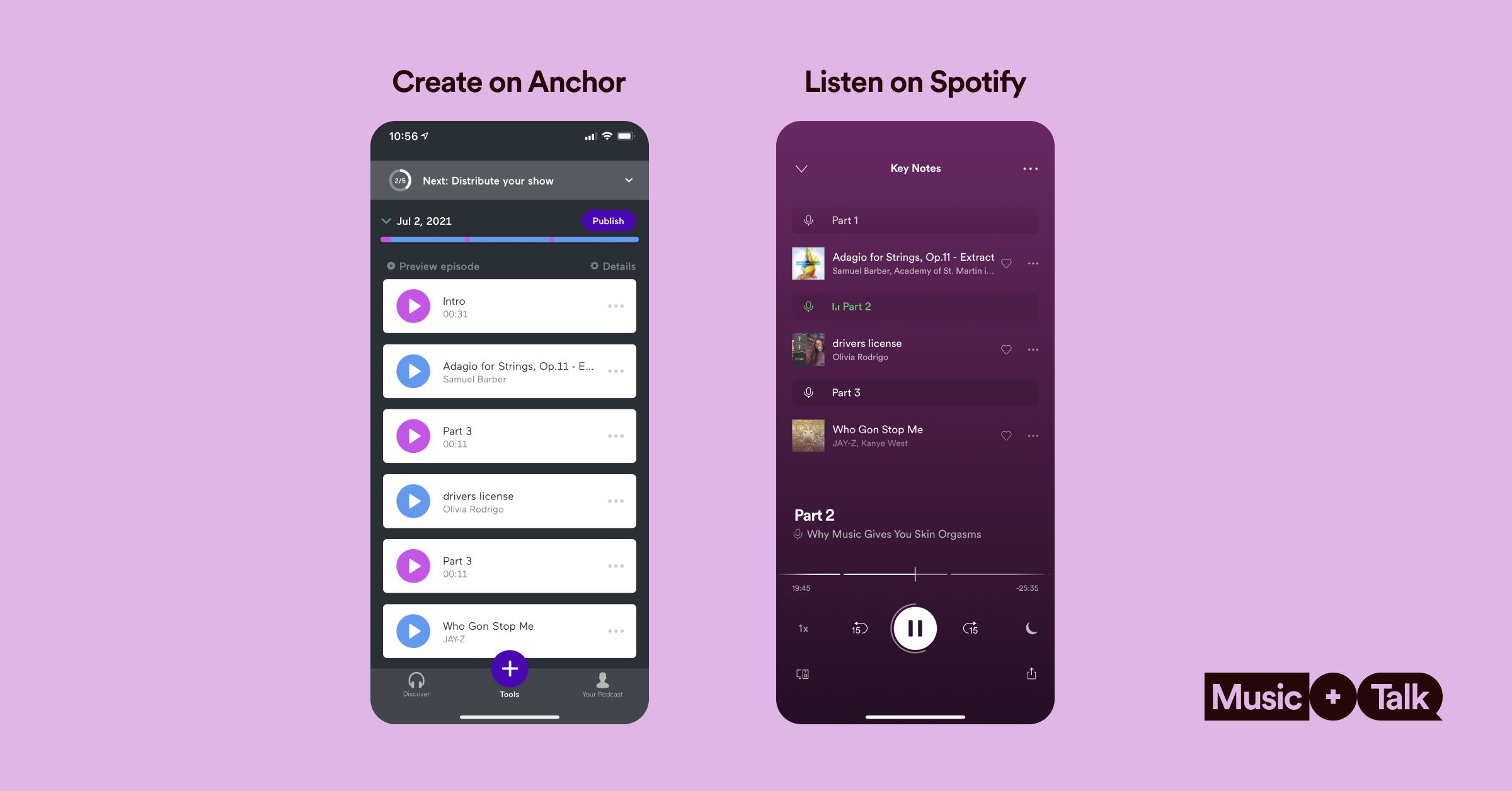 Music + Talk allows creators using the Spotify-owned Anchor podcast creation app to add music from Spotify’s 70 million track library to any show.