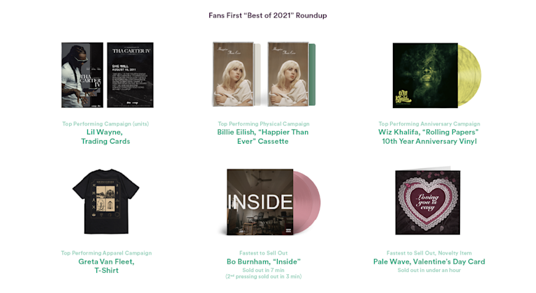 Creating unique merch has not only allowed artists to stand out with their Fans First offers, but it’s helped them create a closer connection with fans. For inspiration, here are some of the top-performing Fans First merch campaigns from 2021: