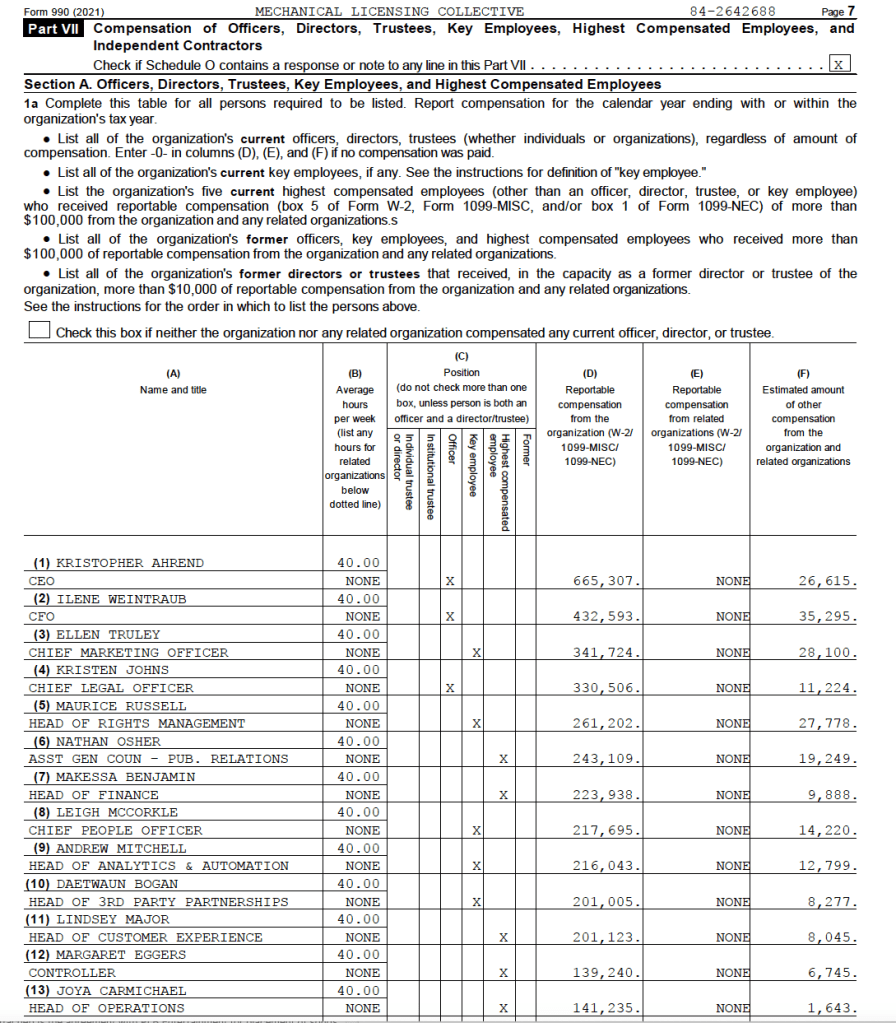 Our friends at The Trichordist found the 2021 tax return for The Mechanical Licensing Collective, including what it pays its executives.