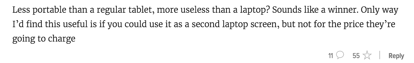Guest Post by Ed Rex on MediumToday Apple announced the iPad Pro — a gargantuan 12.9 inches of iPad. And the reaction on comment boards everywhere has been pretty much what you’d expect: