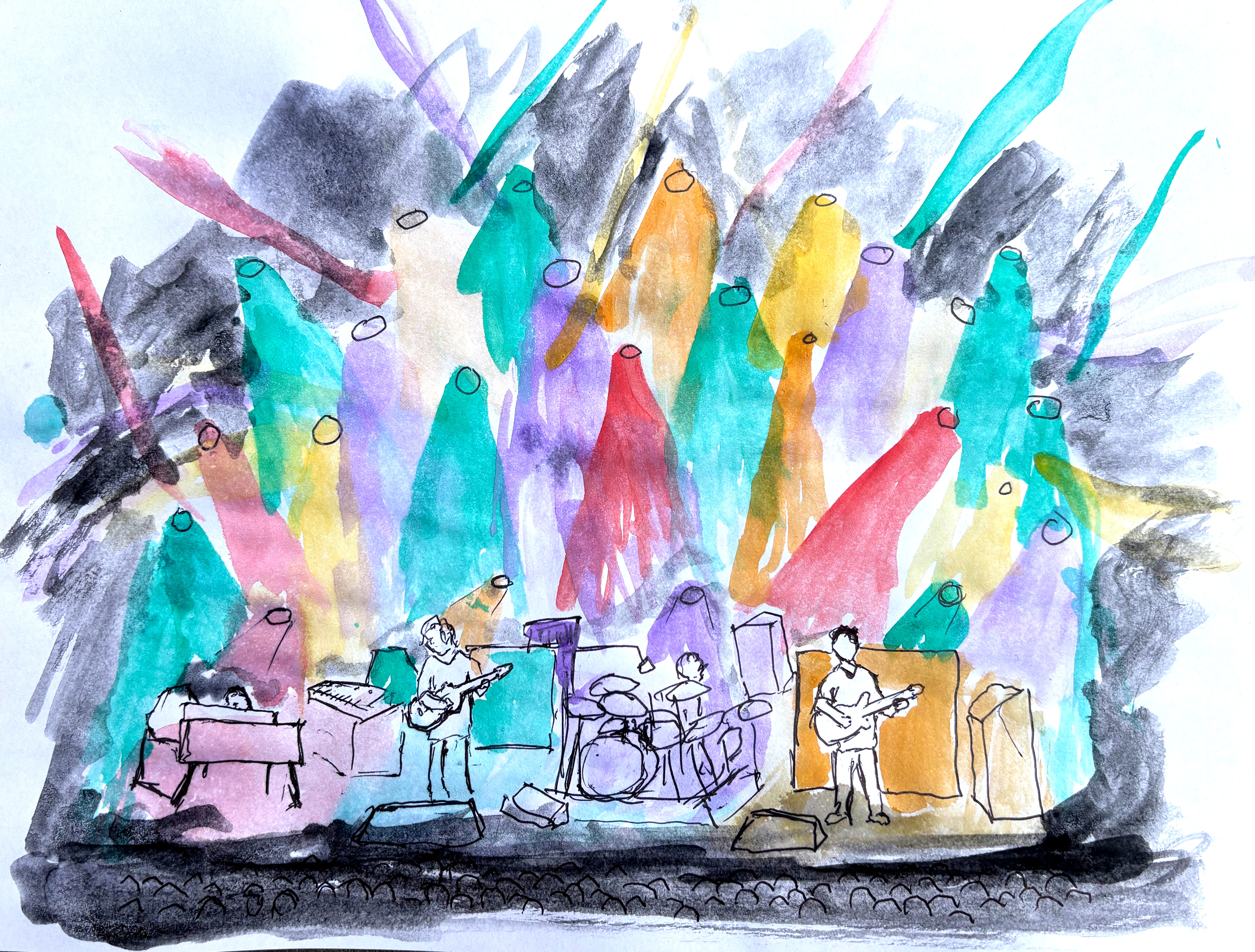 But then suddenly it all locks in. All four members sync up, and the crowd electrifies. There’s often a sense of leaving your body. As Fred puts it: “It’s this incredibly, complex organism, this thing that can at any moment move in any direction. And on an ON night, it’s kind of flowing in this totally unimpeded, organic way. Everybody is in this flow state that we all have read and watched plenty of things on. You can really sense when that’s happening.”