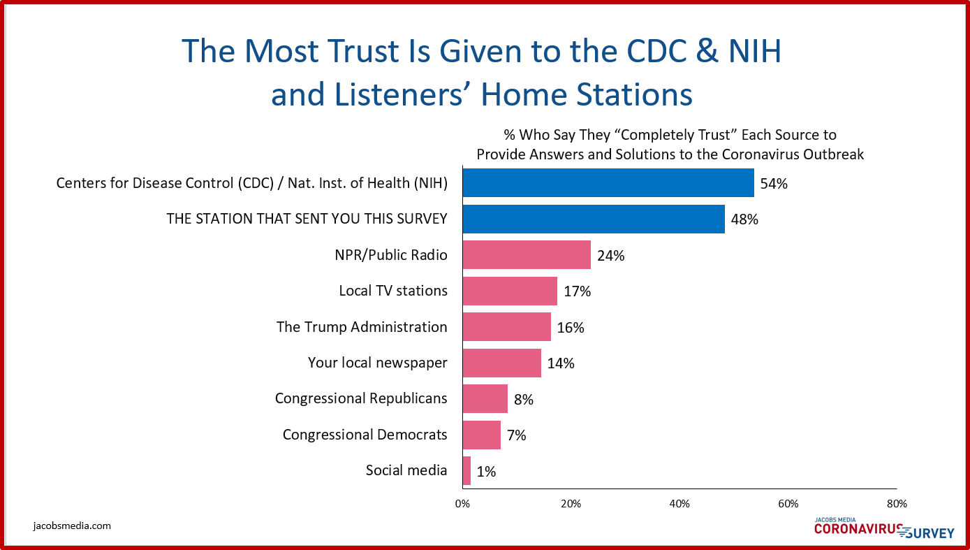 Interestingly, one of our key measures was asking about who people are placing trust in, as this event continues to sprawl in unpredictable directions. A look at the commercial radio survey is highly revealing:
