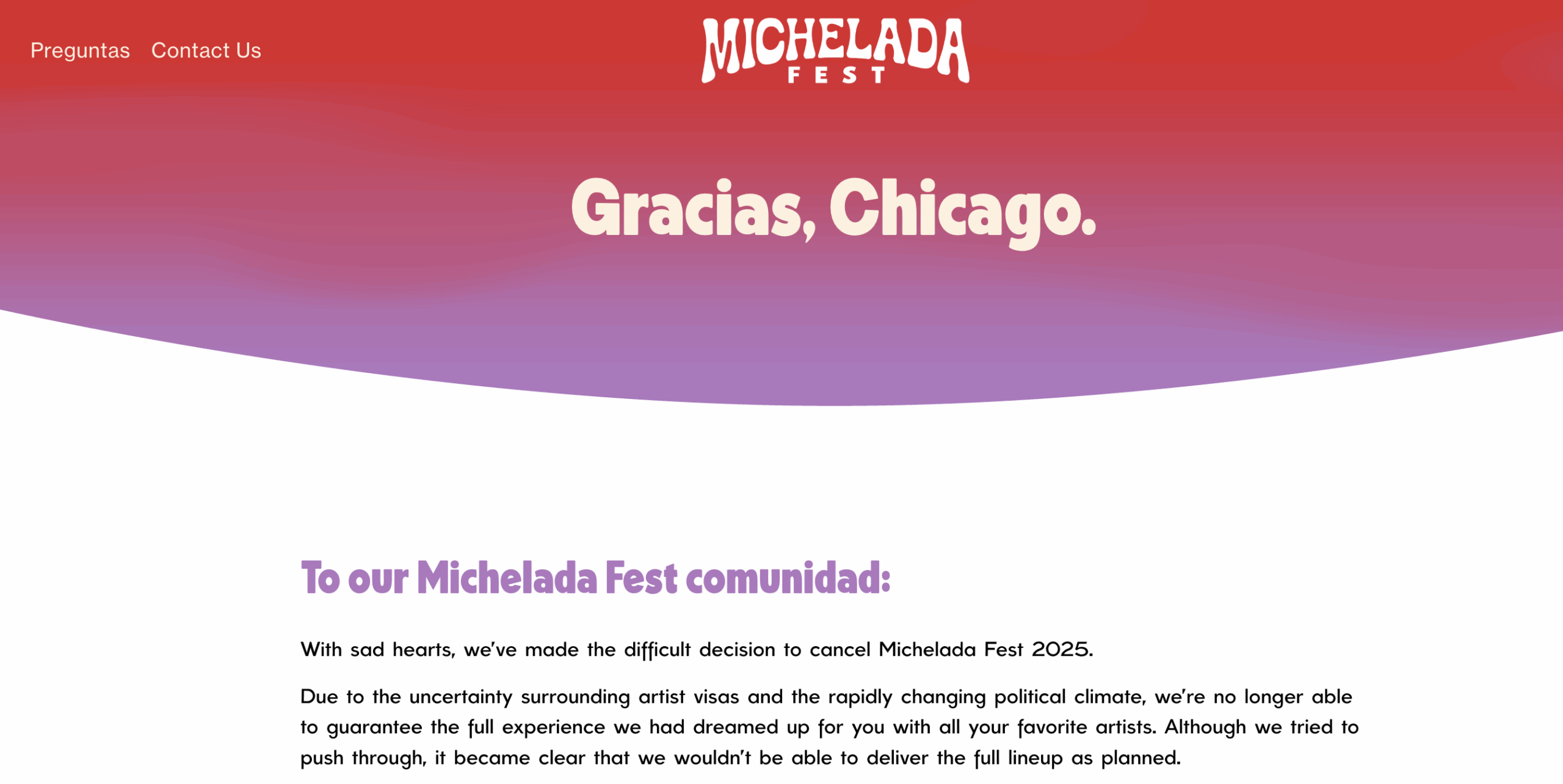 - Michelada Fest (Chicago, US): The festival was canceled entirely for 2025 due to “uncertainty surrounding artist visas and the rapidly changing political climate” under the Trump administration, affecting primarily Mexican corrido artists.