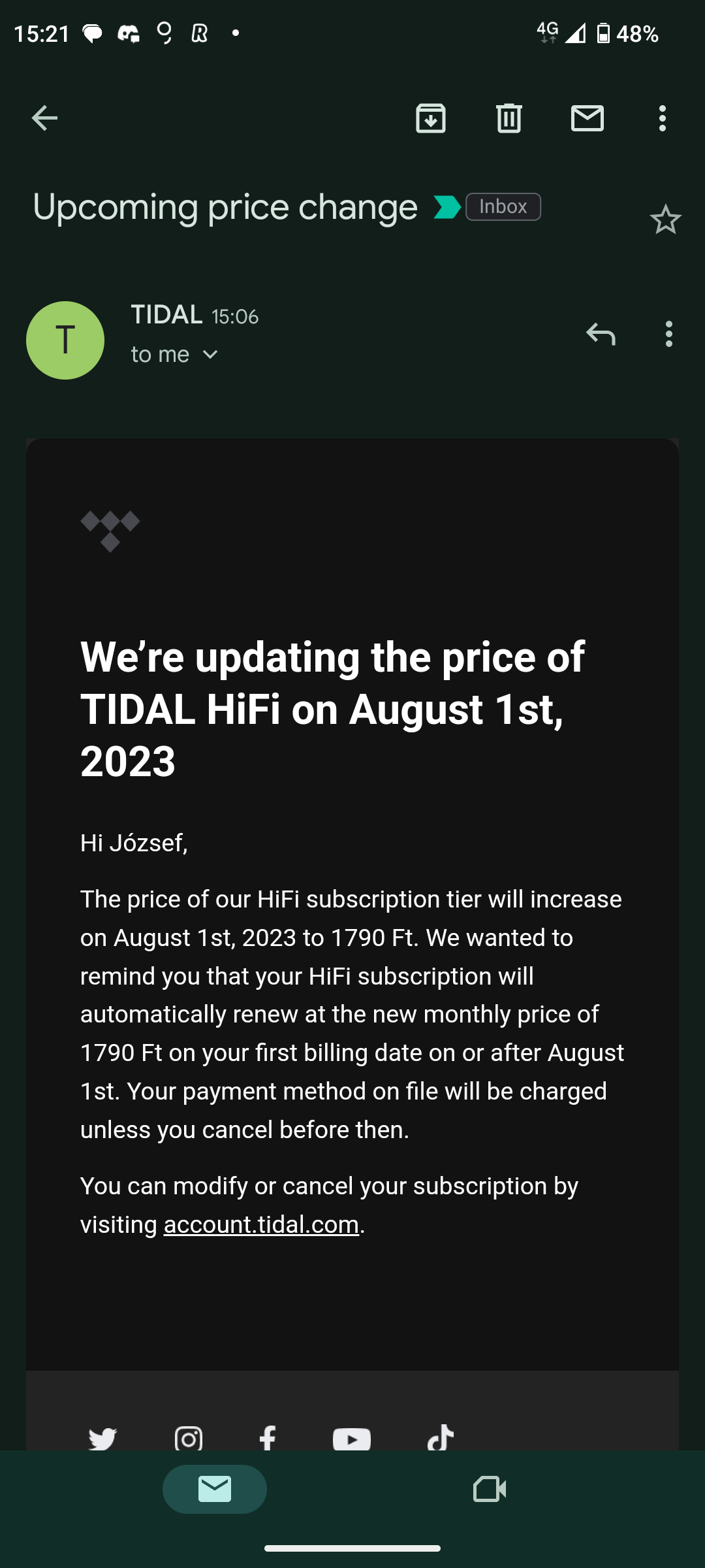 Tidal’s price hike will begin on August 1st.
