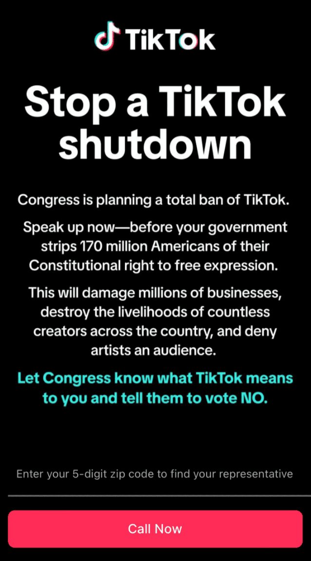 This campaign came days after the Protecting Americans from Foreign Adversary Controlled Applications Act was introduced in the US House of Representatives. This bipartisan bill would require that TikTok be sold by Chinese-owned ByteDance or removed from US app stores.