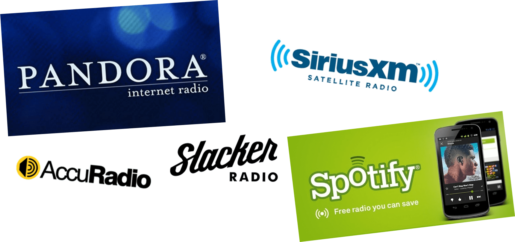 Second, they’re calling it RADIO. For SiriusXM, this is nothing new. They’ve been satellite radio since Day One. But so has Pandora Radio, Slacker Radio, and any number of other wannabes that have come and gone over the years. I created this graphic for a blog post first published in 2016 as proof positive that “radio” as a branding tool and an audio platform is something that no shortage of competitors aspire to be.