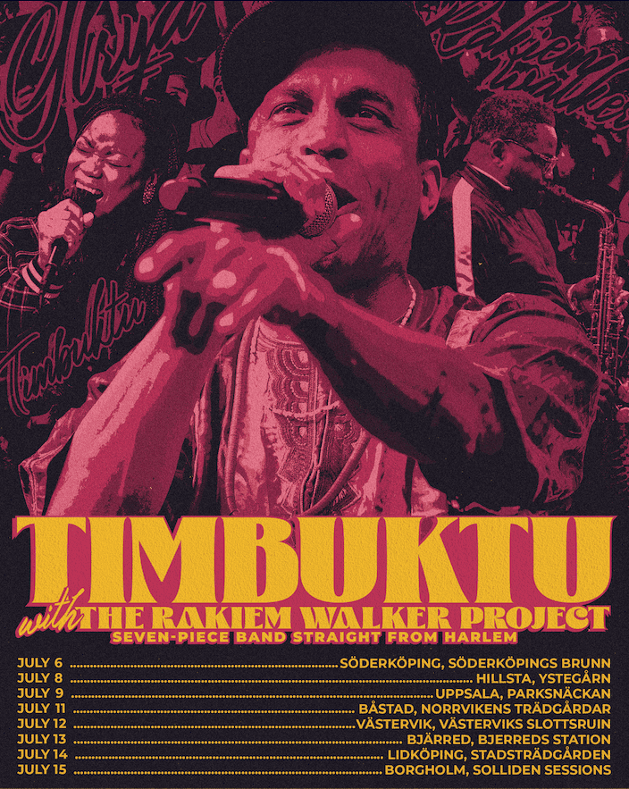 The tour kicks off on July 6, 2024, in Söderköping, Sweden, with a series of incredible performances to follow in Hillsta, Uppsala, Båstad, Västervik, Bjärred, Lidköping, and concluding in Borgholm on July 15, 2024. Each concert promises to be an incredible showcase of Timbuktu‘s artistry, as he takes audiences on a musical voyage that seamlessly fuses genres and cultures.