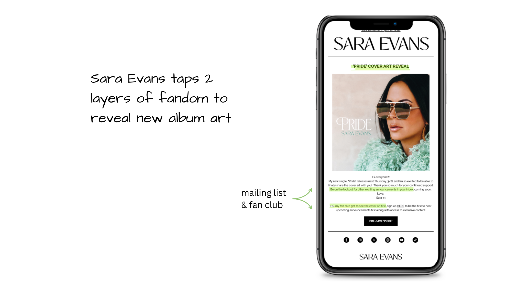 Just look at how Sara Evans tapped in for her newest release, “Pride” – giving her mailing list and fan club the first look.