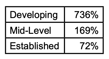 Playlist followers grew by an average of 349 percent for all Artists. Developing Artists benefited most significantly from the ad campaign. The average playlist follower growth was 736 percent for developing Artists. Mid-level Artists grew their playlists at an average of about 169 percent, and established Artists experienced the lowest growth (72 percent).