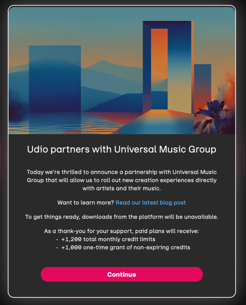If Udio’s model weights were trained on unlicensed works, they’re contaminated. To go legit, Udio must scrap them, retrain with licensed data, re-engineer attribution, and migrate users to a restricted environment. It’s not “pay royalties now,” it’s “start over.” Kind of like this, it’s a partnership, yeah that’s the ticket. Paid plans will receive “credits,” not cash refunds.