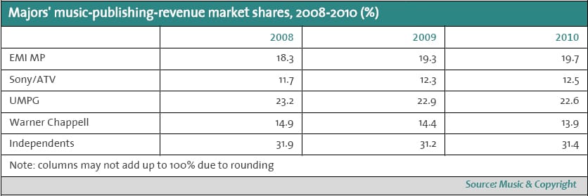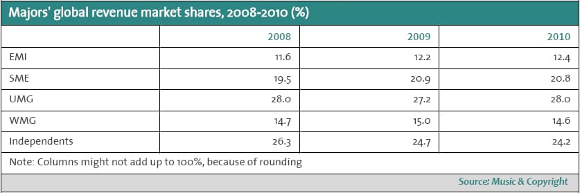 Universal Music Group extended its lead over Sony Music Entertainment last year following an increase in its market share of recorded music sales, says new research from Music & Copyright.. Continue reading [https://www.hypebot.com/hypebot/2011/03/umg-extends-market-lead-over-sony-remains-dominate-m
