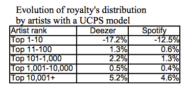 Interestingly, based on Deezer figures, the share of revenues from the top 5 distributors would actually increase by 0.7% with UCPS, to the detriment of smaller distribution companies.