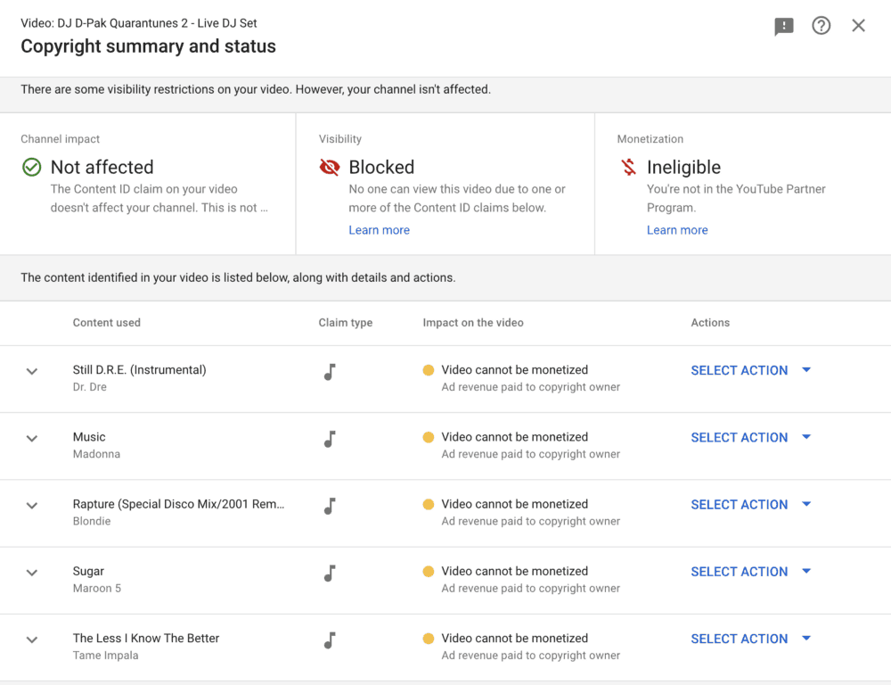 As a DJ or a band, you can stream live audio without video (under the blanket performance licenses and payments to SoundExchange mentioned above). But once you attach a visual element to those streams, like a DJ spinning tracks live or an artist strumming a guitar in a bedroom, the music rights-holders claim a “synchronization” right exists. And, by the letter of the law, they are probably right.