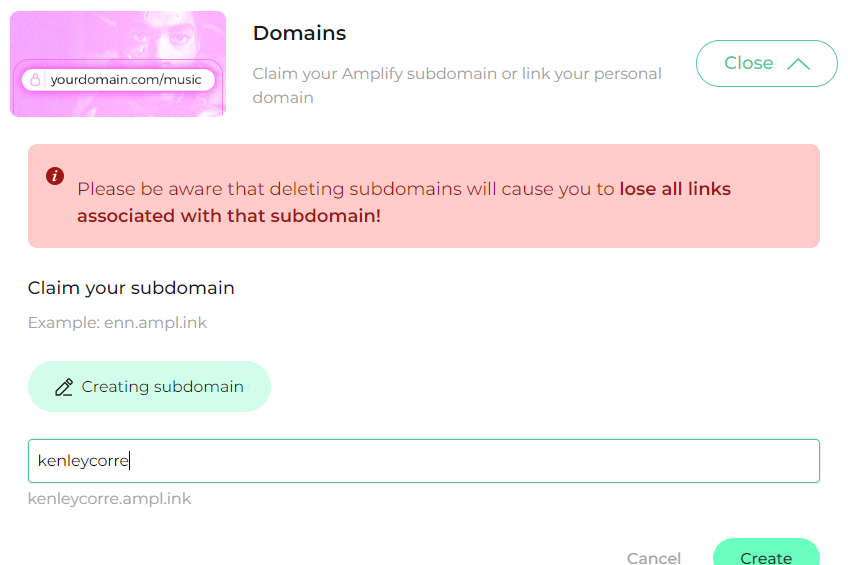These online assets give your brand a professional touch, but more importantly, it makes it easier for your target audience to find your music. So if you want to learn more about custom domains and subdomains and how to create one with AmplifyLink, you’re in the right place.