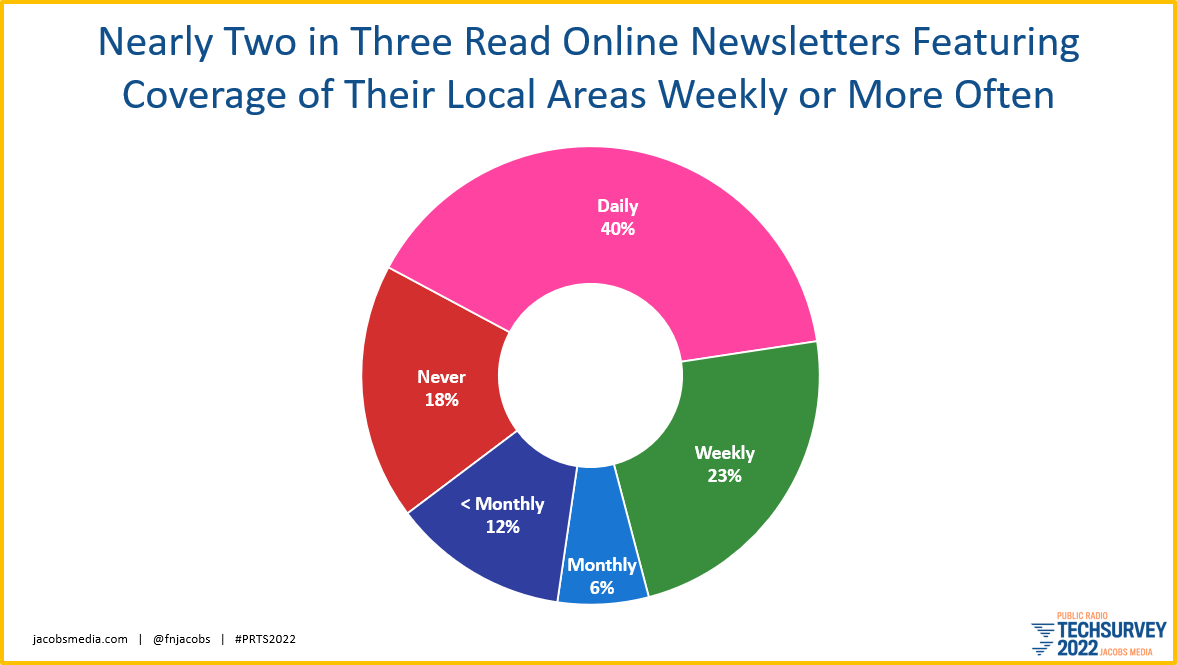 This looks like a mainstream opportunity to me. But commercial radio tends to veer toward web articles, while public radio content creators are often quick to remind me, “WE have a newsletter.”
