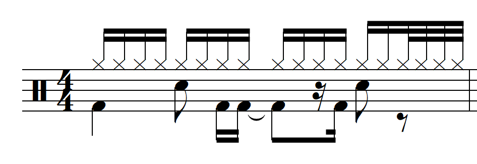 It’s a thick tempo, but it also leaves a lot of space. Like when your groove is this close to a clock’s tick-tock there’s plenty of room for some rhythmically rare “32nd notes.” Listen for them right away, in the hi-hat, as they finish the first and third bar of the song with a “tih-tih-tih-tih,” whispering to that lonesome flutey synth dominant.