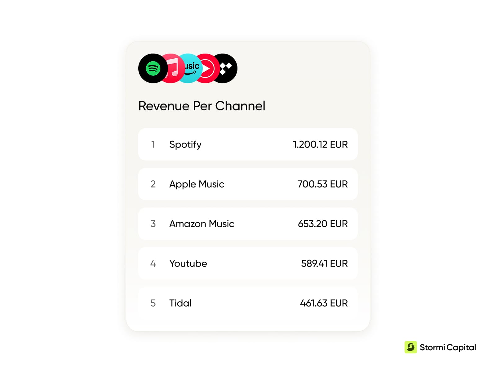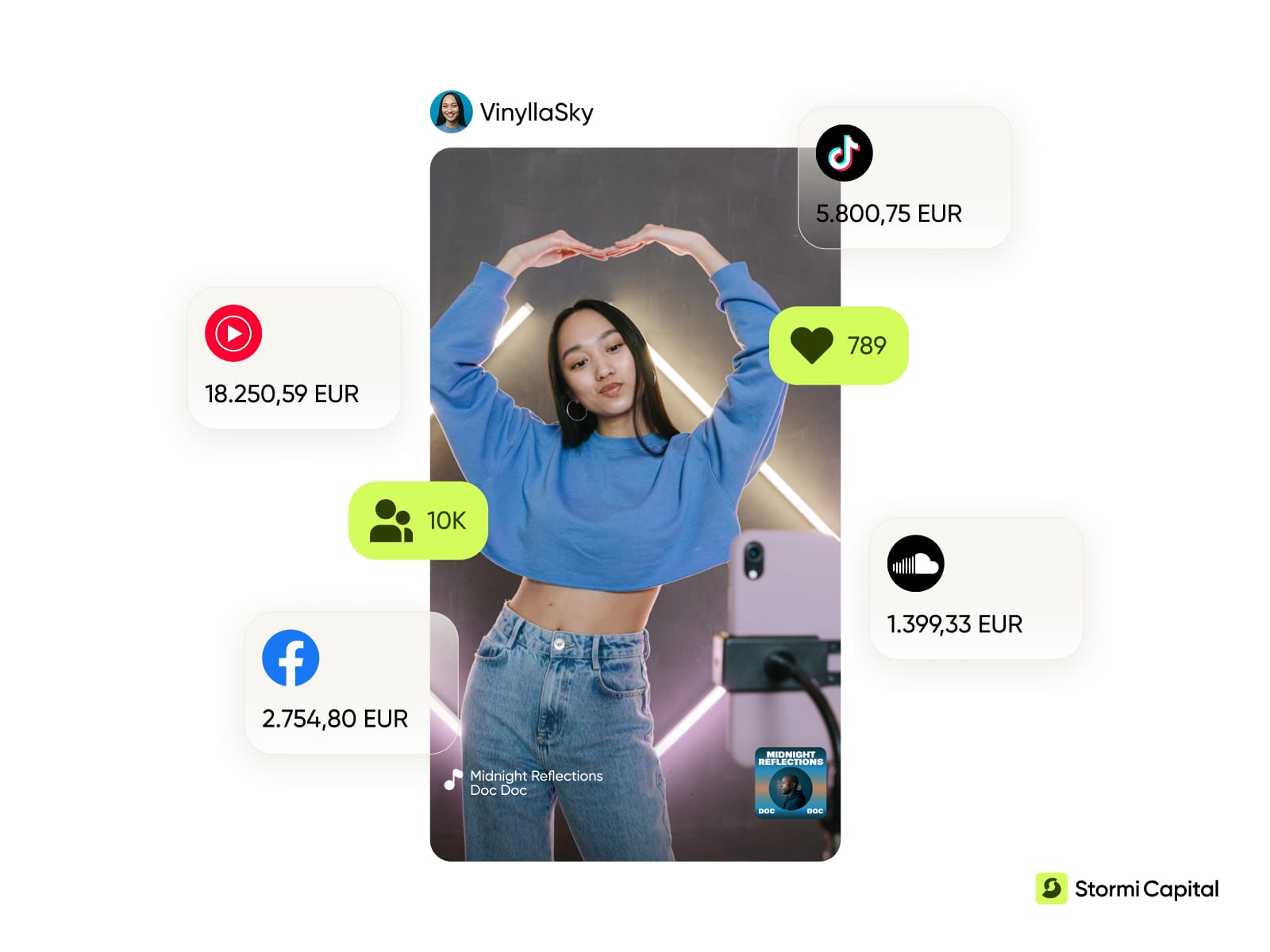 Stormi Capital is an integrated backend for independent labels, distributors and professional artists. Distribution, royalty administration, UGC monetization, data and funding in one system. Not a collection of tools stitched together, but a single operational layer built from the ground up for the way independent music businesses actually work.