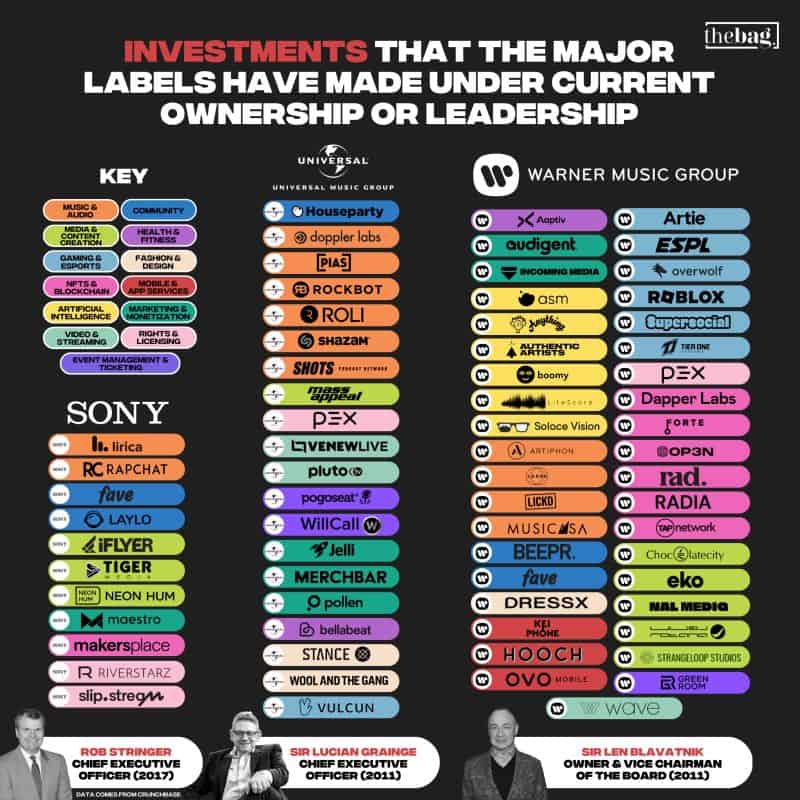 All three major labels and some independents have made significant investments in music tech, but Warmer Music Group is clearly the most aggressive, at least in terms of the number of companies it has taken a stake in.